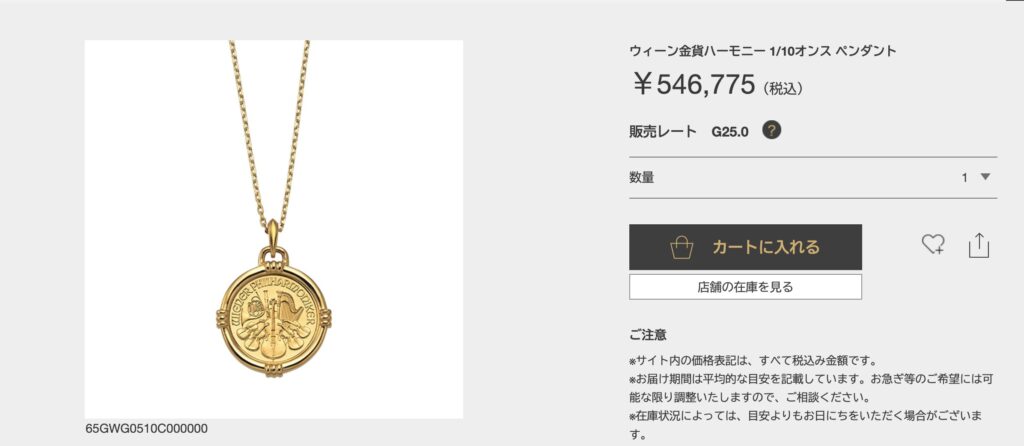 私が見つけたのは、ギンザタナカのウィーン金貨ネックレス(K24)。